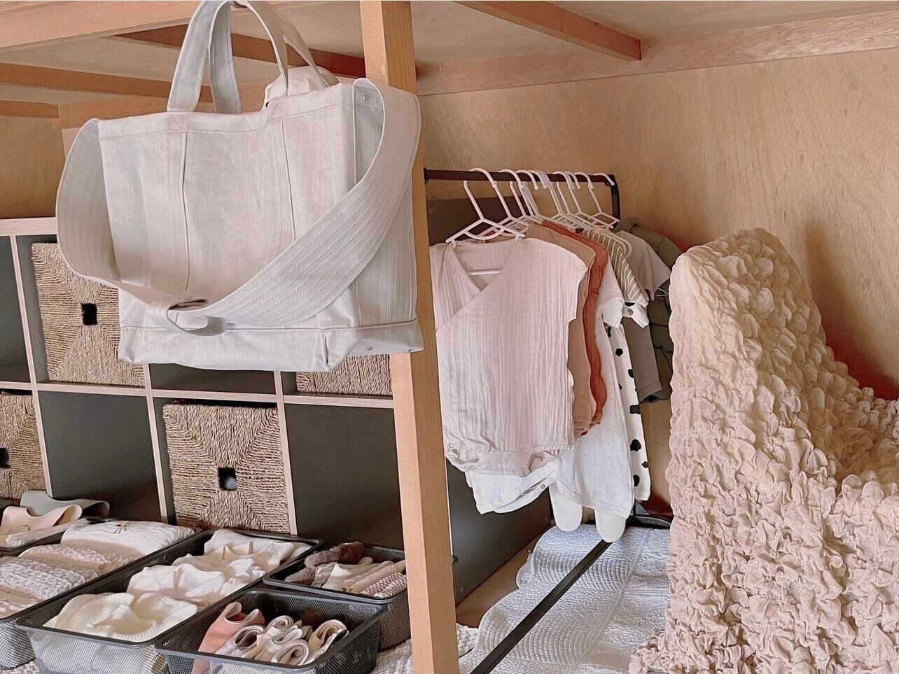 O-seiさんは押し入れの中をベビークローゼットに改造したみたいですよ。使ったアイテムはほとんどがIKEAのもの。ハンガー収納のほか、靴下やスタイなどはカゴ収納が便利そう。使い勝手が良さそうに工夫されていますよね!