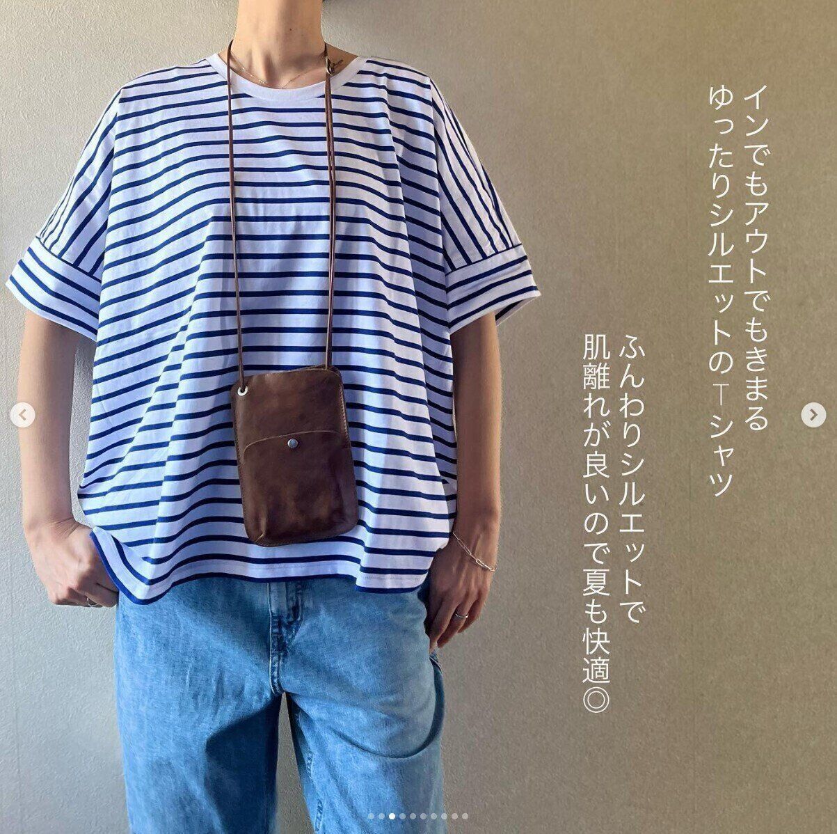みーさんは、コットンオーバーサイズボーダーT(XLサイズ)を購入。ふんわりとしたオーバーサイズシルエットで、ウエストインでもアウトでも可愛く着られるんだとか。肌離れが良く風通しが良いので、夏も快適に着られるとのこと。さらに体型カバーも叶うそうで、コレは買いなTシャツですね!