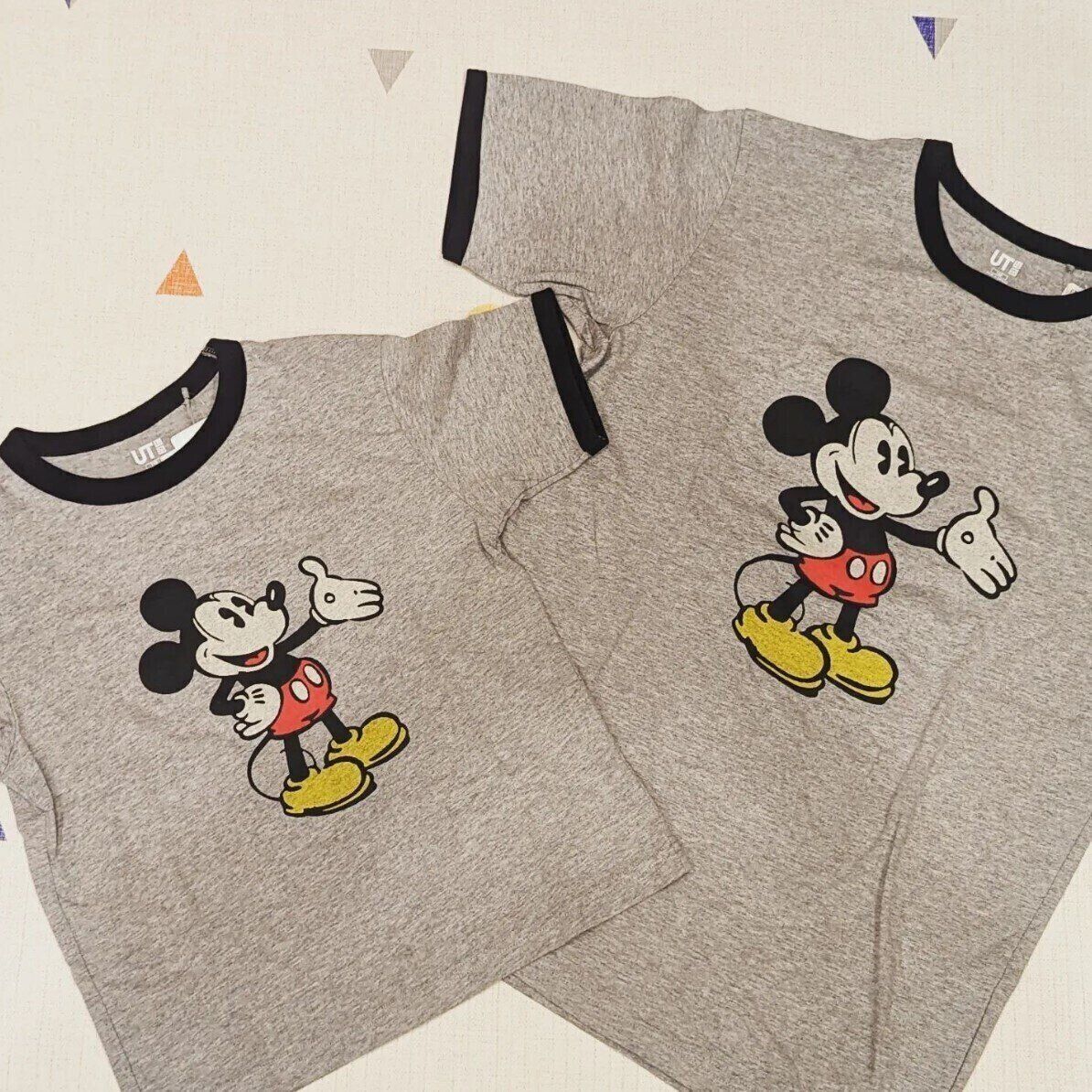 snapple1438さんは「ディズニー・ビヨンド・タイム UT グラフィックTシャツ」の大人用&キッズと親子おそろいで購入。ミッキーのプリントが可愛くて思わずゲットしたんだそう。首や袖に黒のパイピングが入ったデザインが、ヴィンテージ感あってオシャレですよね。