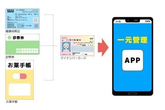今ではマイナンバーカードを健康保険証として利用し、お薬手帳アプリとマイナポータルを連携させることで、より便利に、機能的に情報を受け取ることも可能になりました。