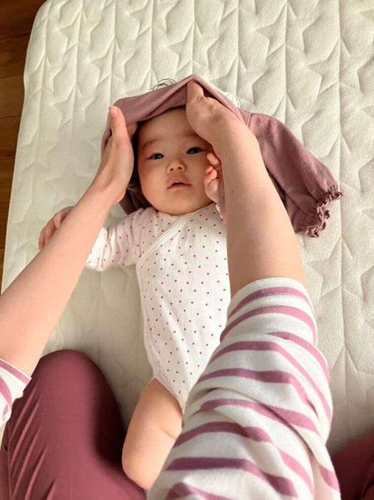首がすわったので、かぶるタイプの服も着せるようになりました。色やデザインなどいろいろ選べて、楽しいです♪