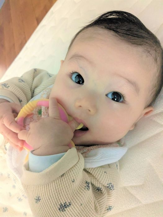 声の出し方もバリエーションが増えました。先日は、おもちゃで上手に遊べず、「ふぎゃー!」と怒ったような声を。初めて聞く声にびっくりしましたが、感情表現ができるようになってきたのかなとうれしくなりました。