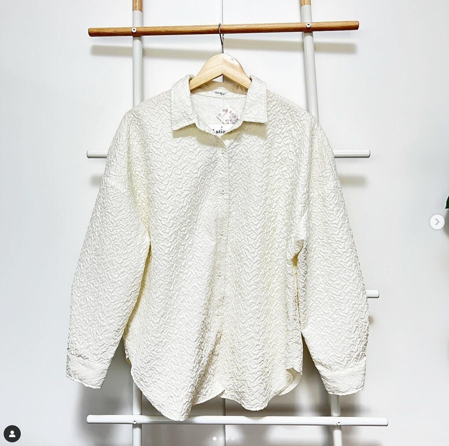 しまこさんはこちらのシャツをセレクト!しまむらの人気ブランド「Lutique(ルティーク)」のアイテムだそうで、生地のエンボス加工が高見えポイントですよね。価格は1,969円だったとのこと!