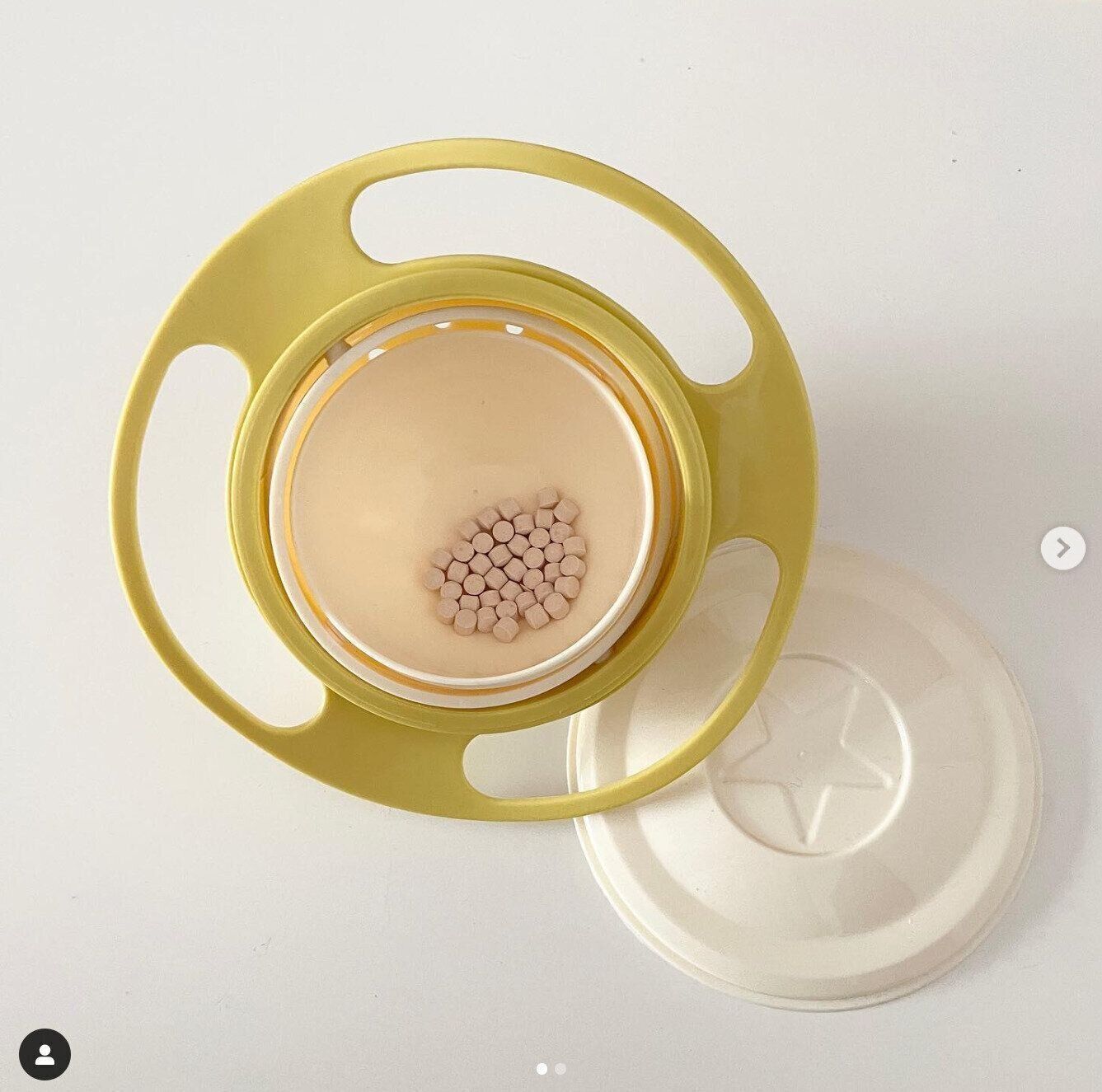 こちらはryukoto.mamaさんが3COINSで購入したジャイロボール。中の容器がぐるぐる回るため、持ち手を持って傾けてもお菓子がこぼれにくいのだそう。ふたもついているようなので持ち運びにも便利そうですね。「330円でこれはやばい!!」とコスパのよさに驚いているようです。