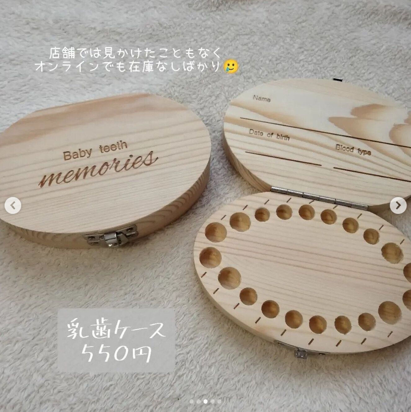 こちらはmaru_ie.kurashiさんが550円で購入した3COINSの乳歯ケース。人気で在庫切れが続いていたようですが、オンラインショップでたまたまゲットできたんだとか。名前や誕生日のほか、乳歯が抜けた日までメモできるようです。木製で可愛いと気に入っている様子♪