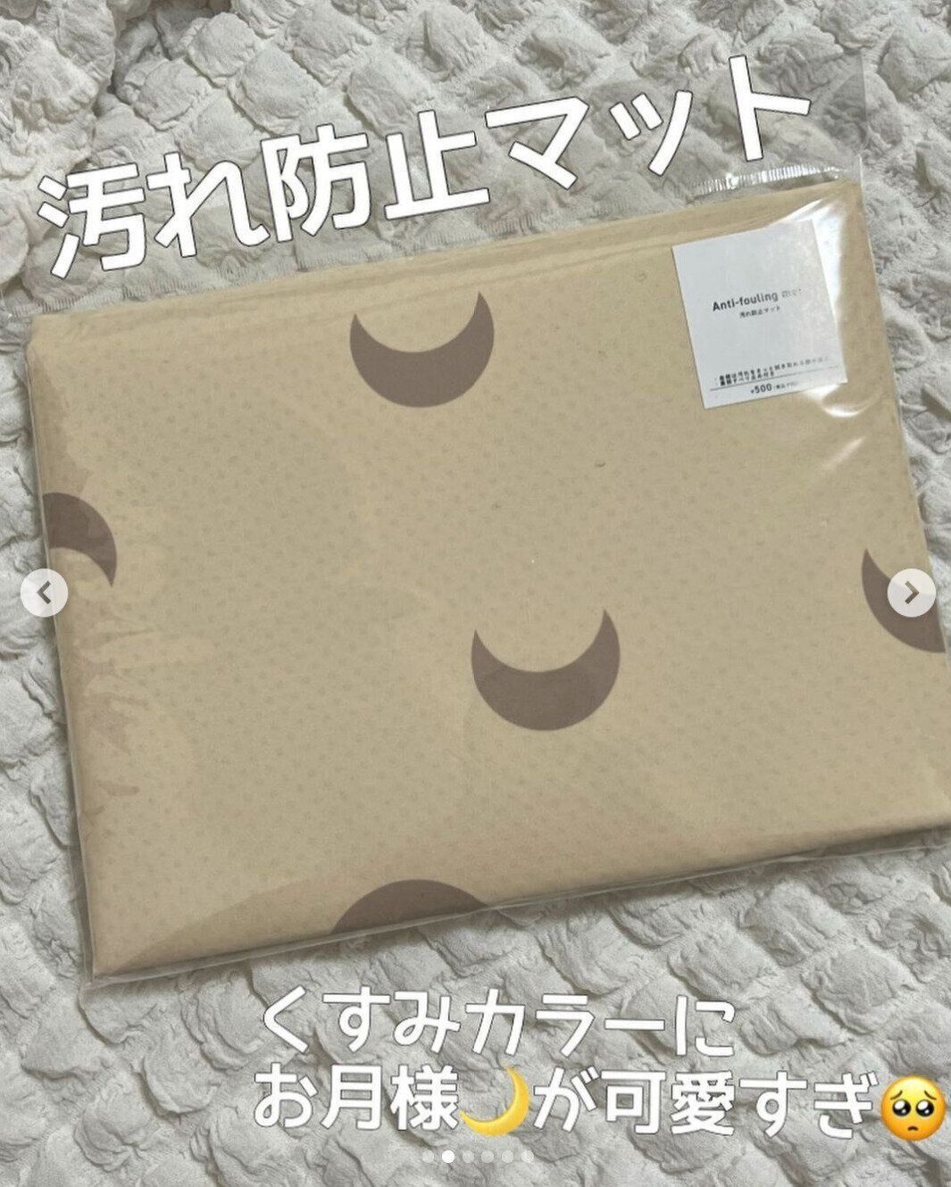 こちらはayo_babygramさんが3COINSで購入した汚れ防止マット。食べこぼしなどで床が汚れるのを防いでくれるアイテムのようです。フローリングの溝に汚れが入ることがなくなりストレスが減ったんだとか♪ こちらは550円商品で、サイズは横90cm×縦70cmとのこと。