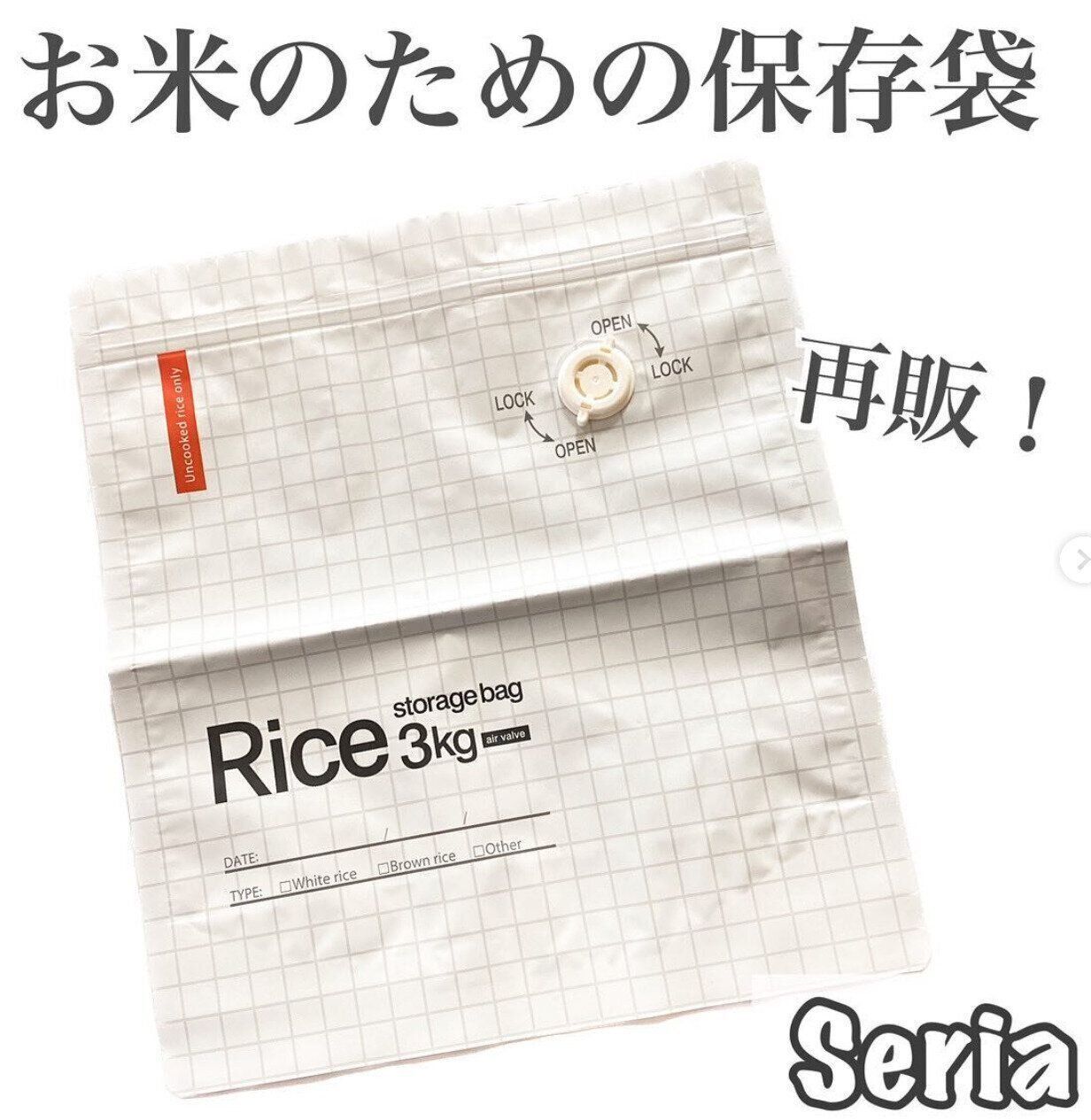こちらは100kin_magさんがセリアで購入した「お米のための保存袋」。バルブ付きで空気を抜くことができるため、お米の鮮度を長持ちさせられるのだそう。自立するとのことでお米の出し入れもしやすそうですね♪ 人気商品のようで再販でようやくゲットできたんだとか。