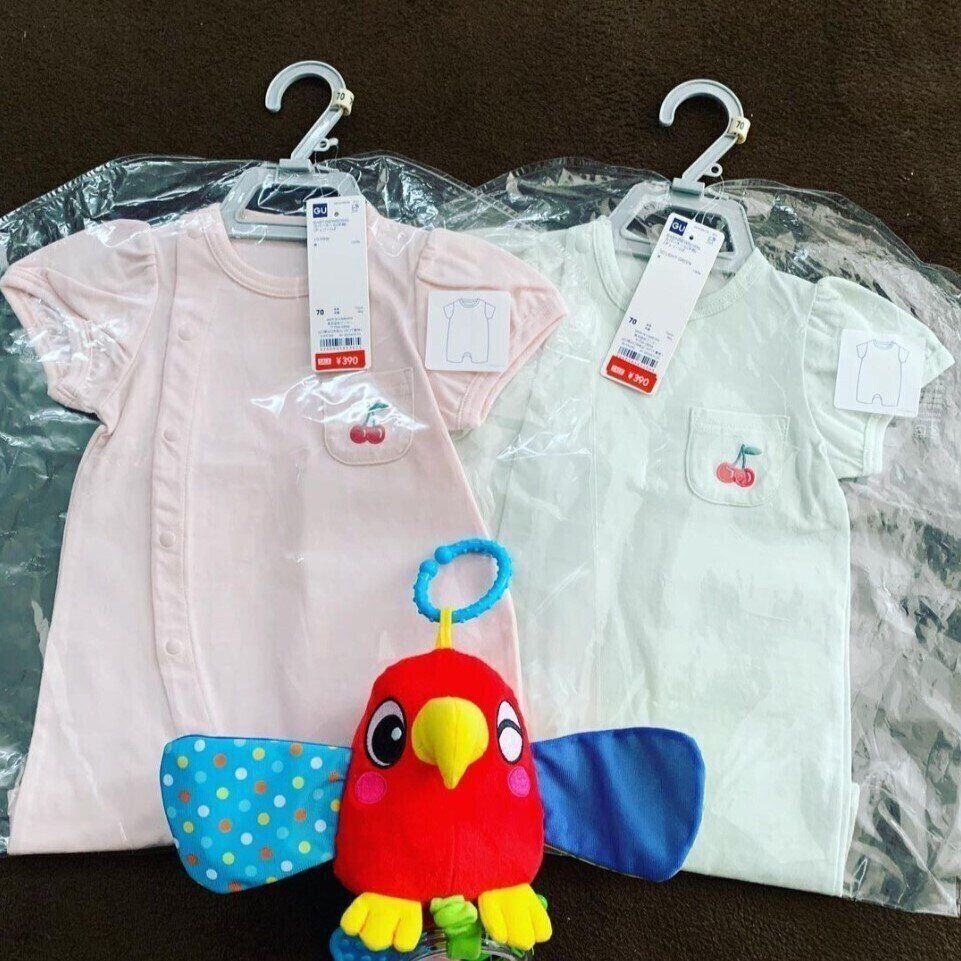 mipo_k21さんは、こちらのカバーオール(各390円)を購入。どちらも70サイズをゲットしたようですよ。お気に入りのアイテムだそうで、全色コンプリートしたんだとか。胸元のさくらんぼの刺繍がなんともキュートですよね。