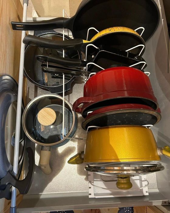 ha.ku0524さんがニトリで購入したのは「伸縮ざるボウルフライパンスタンド」。ごちゃっとしていたフライパンや鍋の定位置が決まってすっきりとした印象に!鍋やフライパンなどをこのように立てて置けるので、使いたいときに毎回重ねているものをどけなくていいのは使い勝手がよさそうですね。