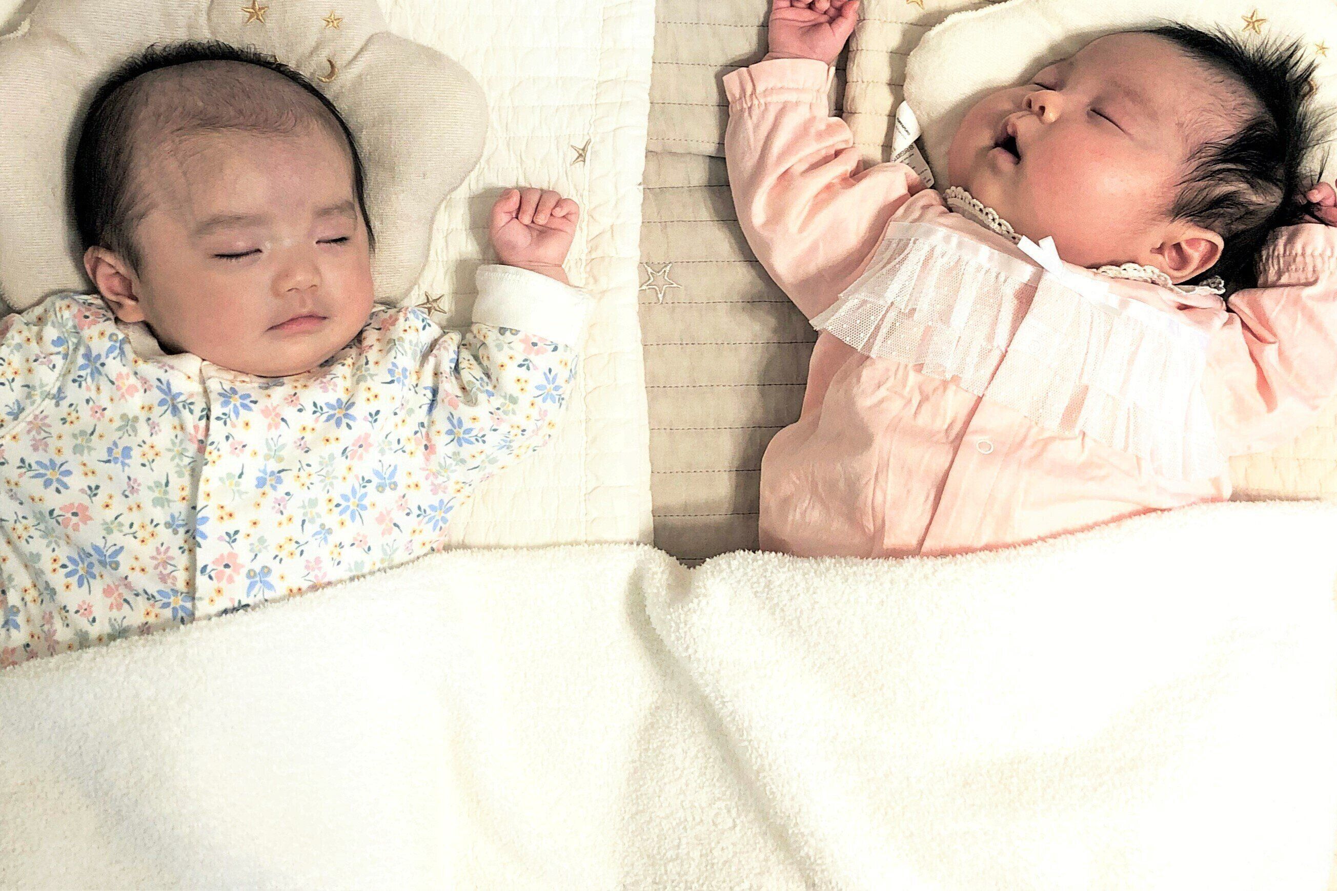 1週間違いで生まれたいとこの、りりかちゃんに会いに行きました。一緒にお昼寝しているときに、じっとしているりりかちゃんに対して、周音は表情が七変化し体をモゾモゾ。同じ月齢なのに、それぞれ個性があるんだなと思ったら、ぐずり始めると仲よく泣き声で大合唱でした(笑)。