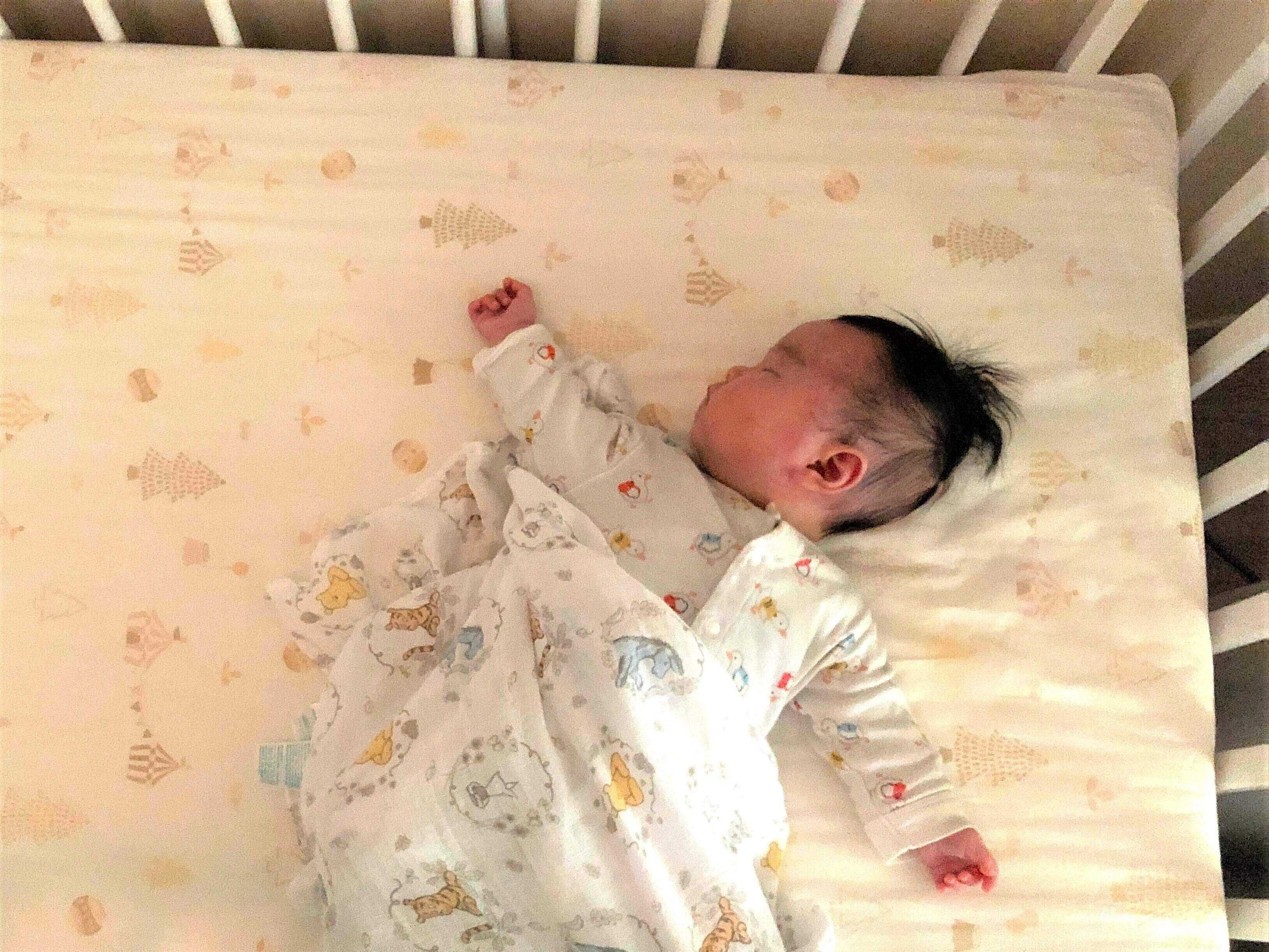 早朝に「ゴツン」という音のあと、「ふえええ~!」と泣く声が。あわててベビーベッドを見ると、ベッドの中で90度回転してさくに頭をぶつけてしまったようです。抱っこして向きを直してあげましたが、その後も同じことが! 自分で移動できるくらい脚の力が強くなったのだと驚きました。