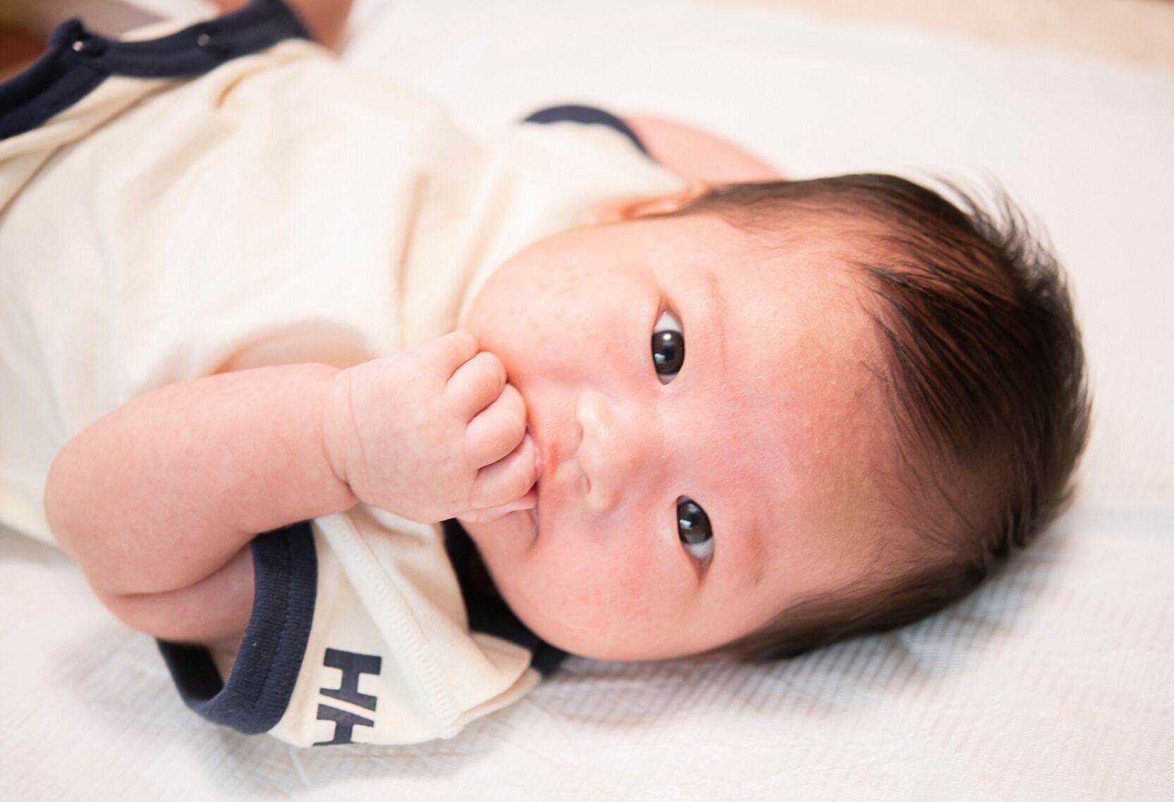 おなかがすくと指をチュパチュパ。以前はげんこつしゃぶりでしたが、最近は人さし指を1本吸うのがお気に入りのようです。