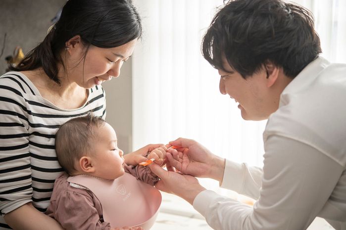 離乳食を始めた紬木(つむぎ)ちゃん。「あ~んのお口がたまらなくかわいい!」という、ママ・パパの日々のお世話の様子を紹介します。