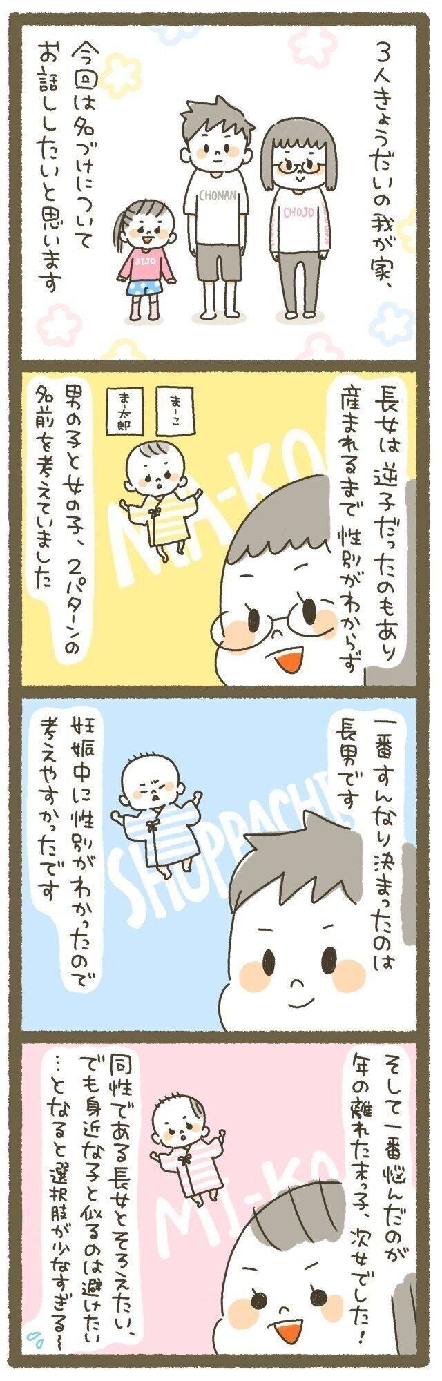 次女は年が離れているので名前がバラバラだと寂しいと思い、上の子たちとそろえた名前にしたかったんですよ。