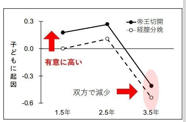 しかし子どもに起因する育児ストレスには、3つの時点すべてで有意差があり、帝王切開で出産したママのほうがよりストレスを抱えていることがわかりました。