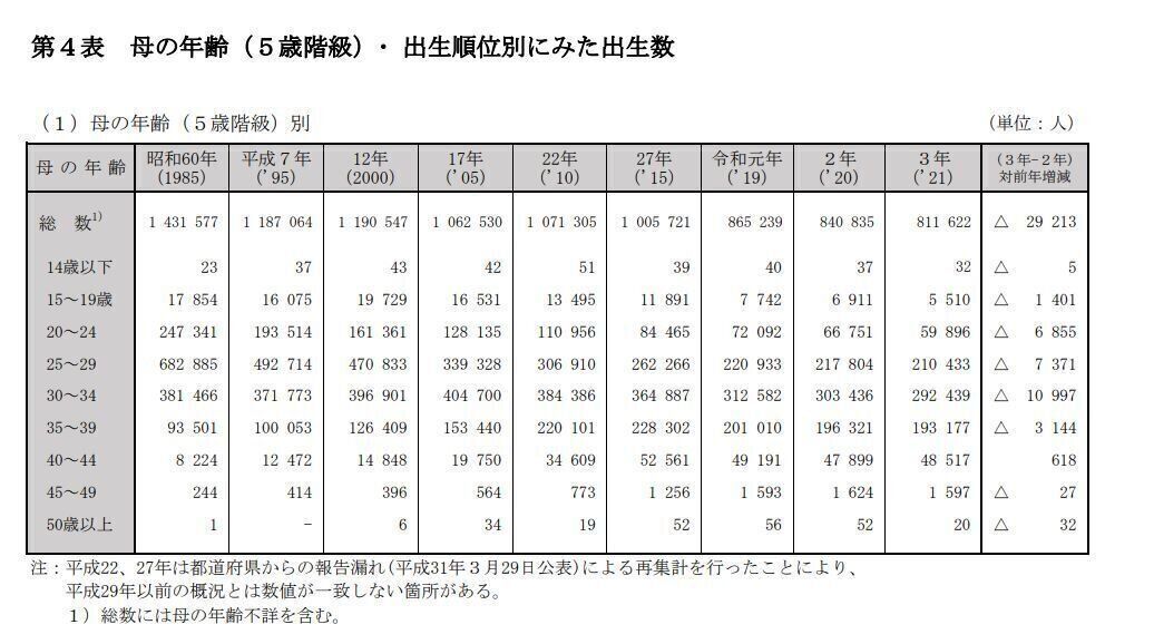 厚生労働省が発表した「母の年齢別にみた出生数」を見ると、『たまひよ』が創刊された約30年前と同時期の1995年と2021年を比較すると、20代~30代前半のママから生まれた赤ちゃんの出生数は約5割減、30代後半のママでは約2倍、40代は約3~4倍と、現在は高齢出産が顕著であることがうかがえます。