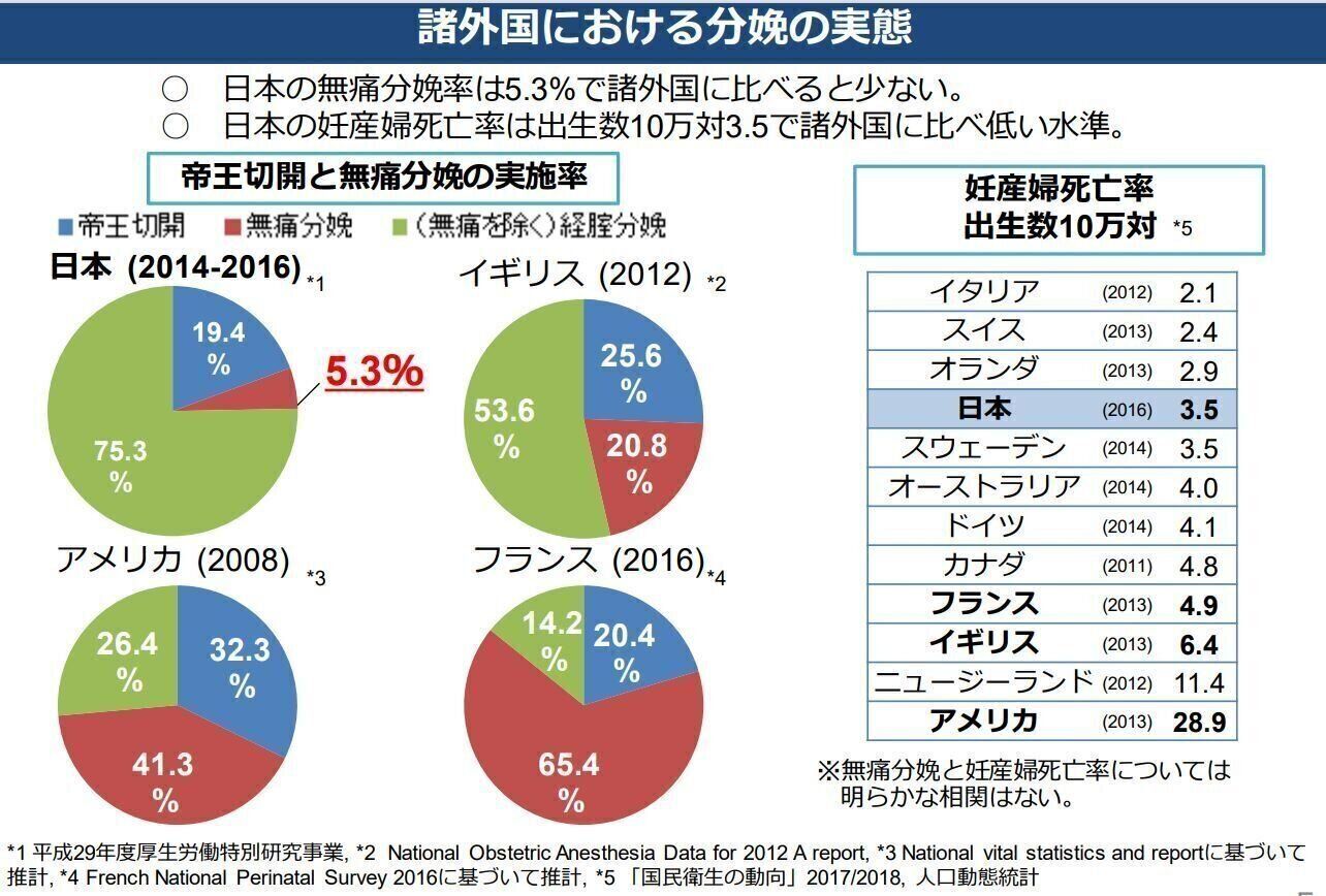 ――無痛分娩での妊産婦死亡率はほかの分娩方法と同等と判明したのに、日本の無痛分娩実施率は海外と比べると低いです。