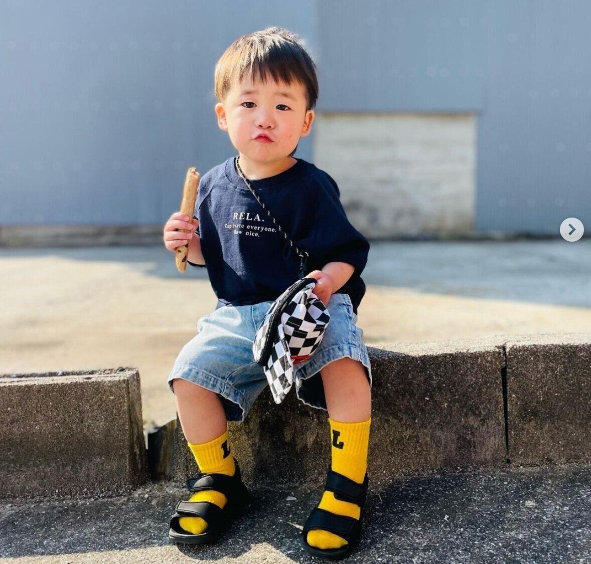 naaaさんはしまむらで展開中のブランド「RELA.(リラ)」のキッズTシャツでコーディネート!胸元の英字プリントがポイントで、イエローの靴下との相性もピッタリですよね。思わず真似したくなる上級おしゃれコーデです♪