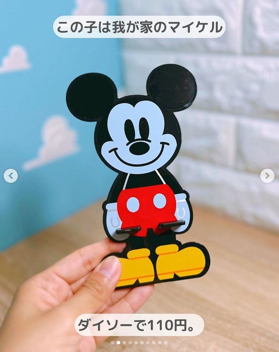 こちらはmiyu_yanenさんがダイソーで購入したミッキーのスマホスタンド。シンプルな作りですが、充電器のコードを通す隙間もあり使い勝手がよさそうです♪ ほかにもプーさんやミニーちゃん、ドナルドバージョンもあるんだとか。可愛くて見ているだけで癒されますね。