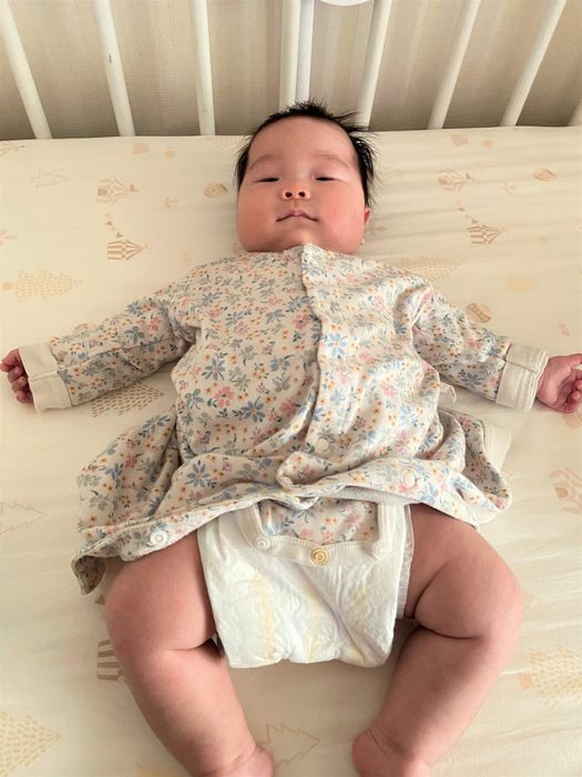 最近、おむつを替えようとすると、この大の字のポーズを取るようになりました。「早く替えてね~」と言うかのように私やパパを見つめながら待っていてくれます。