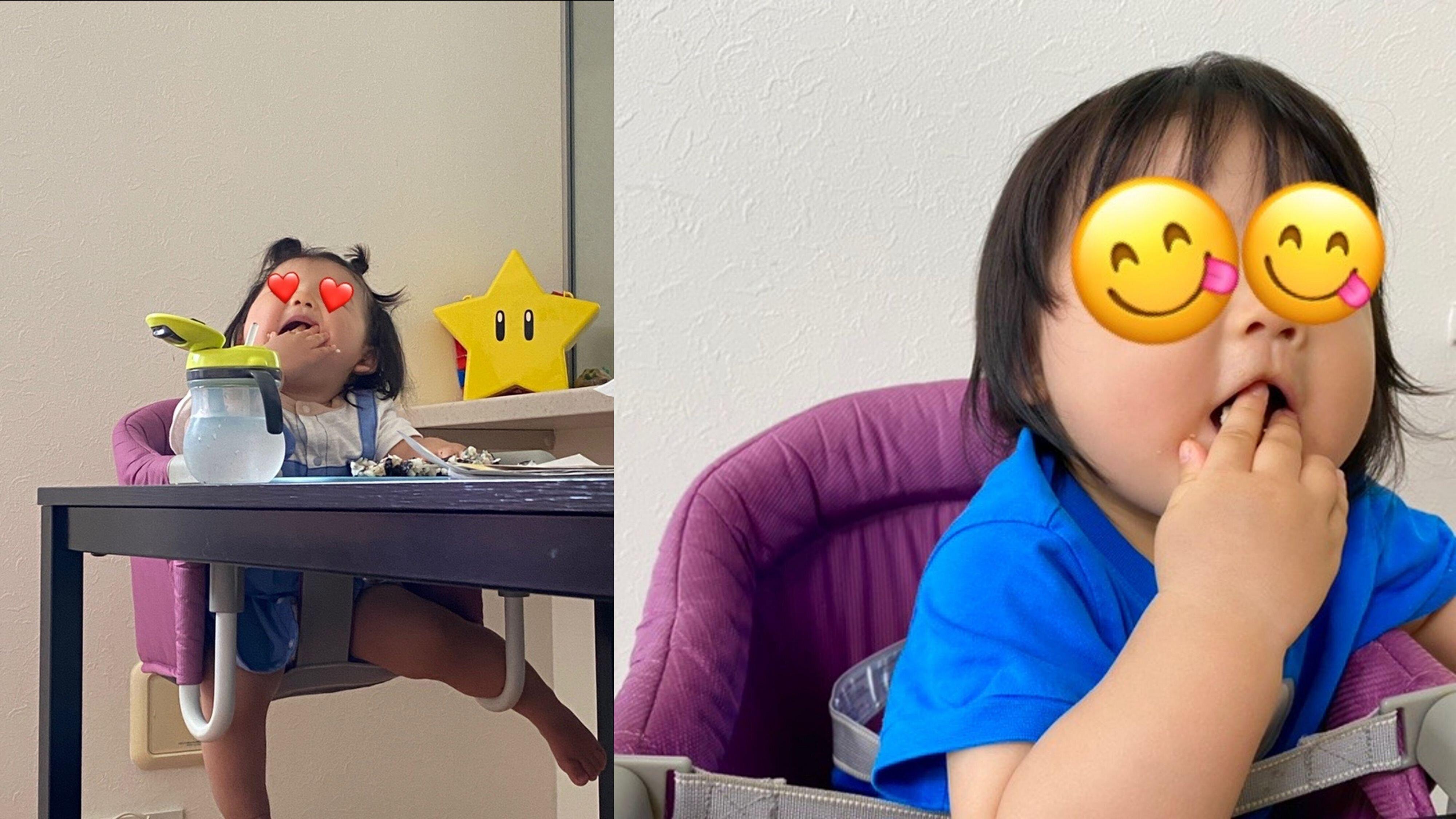 喉を詰まらせるのが怖いから、僕ら親が食べさせようとするんですけど、自分で食べたい欲がすごくて、両腕振り回してめちゃくちゃ怒るんです!