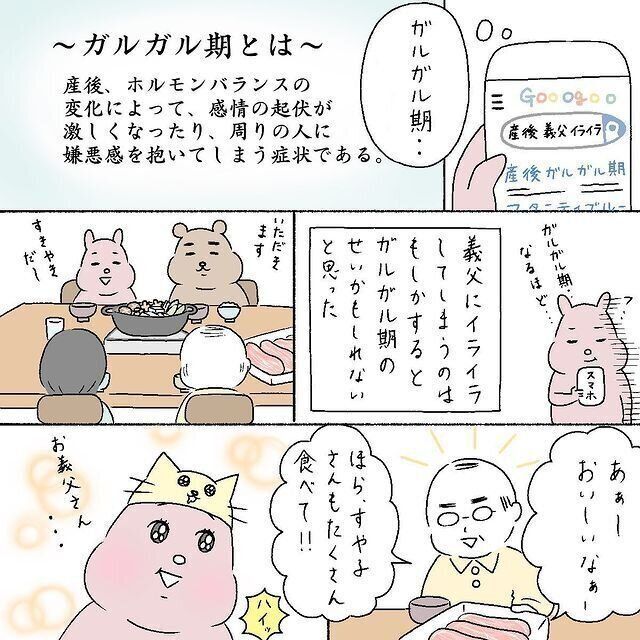 産後は義両親が手伝いに来てくれるも、気をつかってうまく頼れなかったというすや子さん。ふだんは夫が出張に行き、すや子さんが1人で育児をしている時間も多かったそうです。「頼れない」状況に追い詰められてしまうと心がパンクしてしまうので、1人で頑張りすぎないことが大事です。