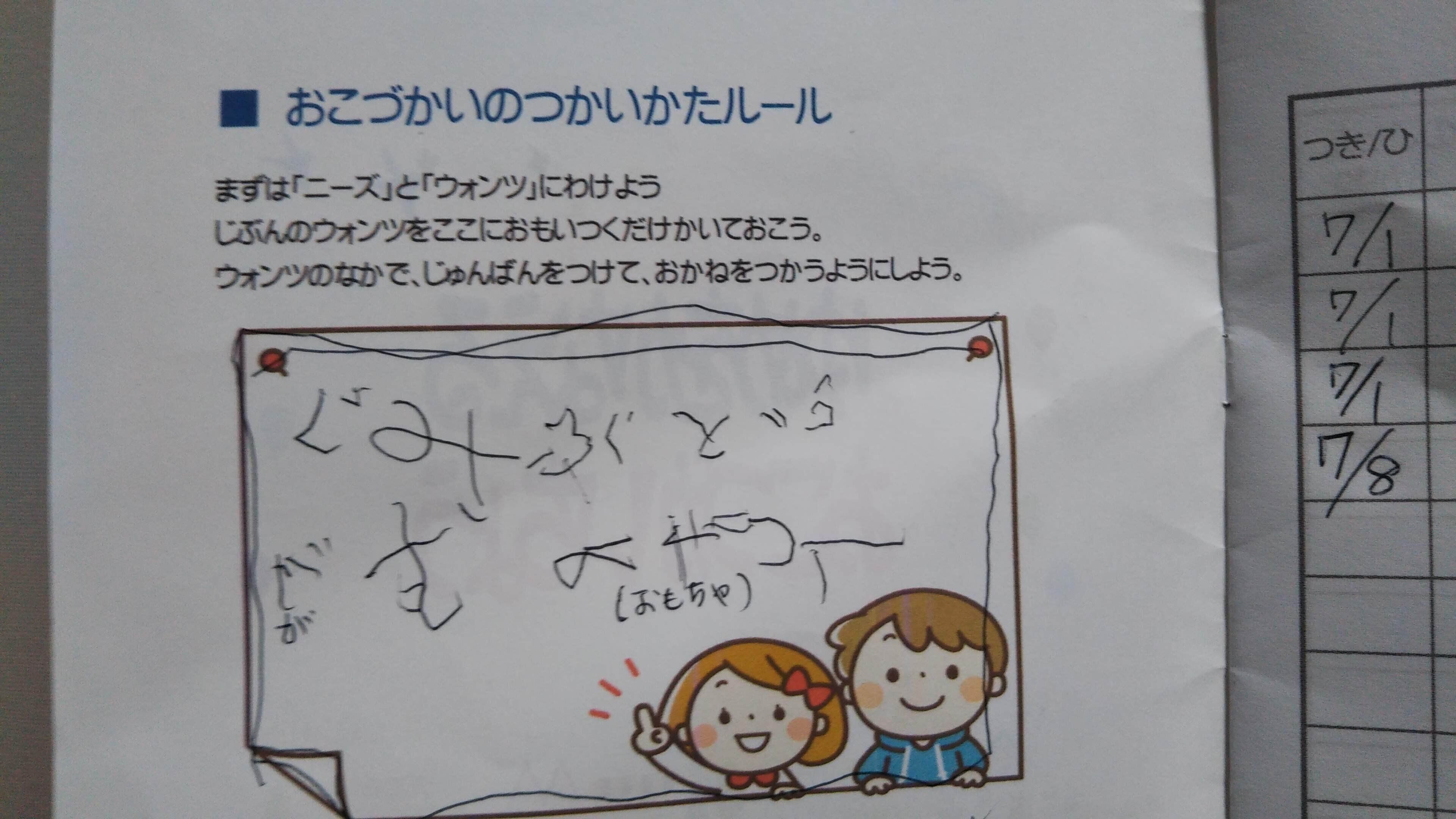 当時から私と一緒におこづかい帳をつけていましたが、計算できないし、金種(5円玉、10円玉、1000円札など)がわからないので残金もきちんとは把握できませんでした。ちなみに娘が全金種をちゃんと理解したのは小学校2年生でした」