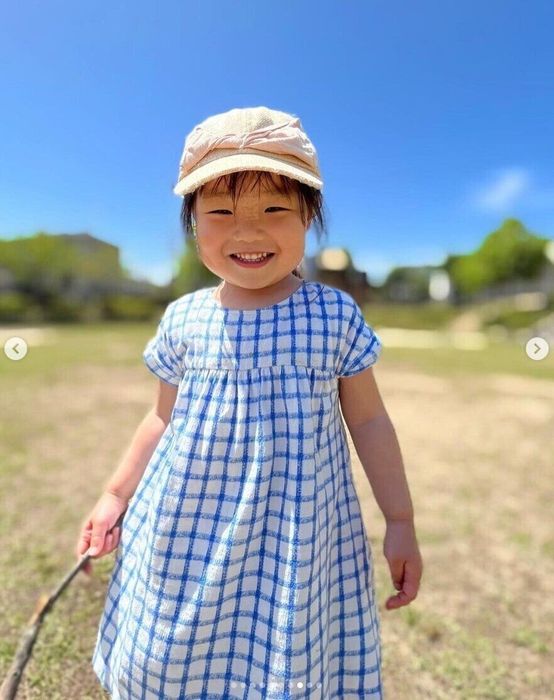 みゅうみゅうさんは、爽やかな柄のチェックワンピースを購入。一枚でコーデが完成するとってもキュートなアイテムですよね!こちらは特にお気に入りの写真のようで、お子さんの成長がますます楽しみとのこと。こちらまで笑顔になるショットですね♪