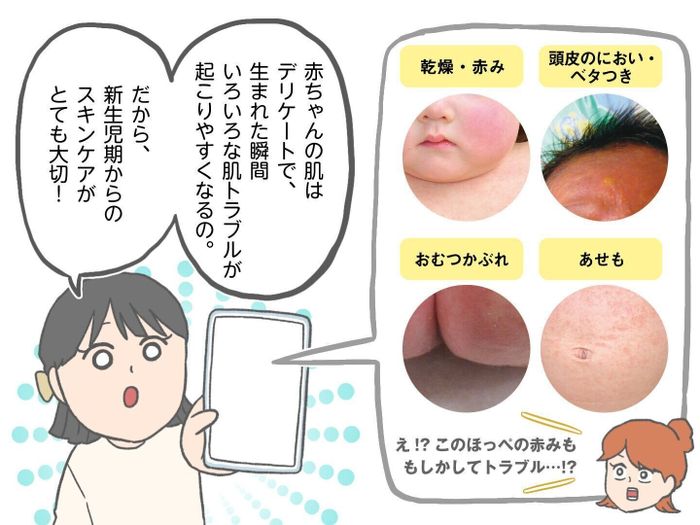 「赤ちゃんの肌はデリケートだから、スキンケアはもちろんやっているのに、カサカサしたりブツブツが出るのは仕方がないことなの?」と悩んでいる新米ママ・パパは、正しいスキンケア方法ができていないのかも!? 新生児期から3才ごろまでは、未熟な肌をはぐくむために大切な時期でもあります。ここで正しいスキンケア方法をマスターして、一生もののすこやか肌をめざしましょう。