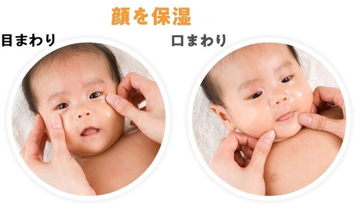 おふろ上がりはもちろん、朝起きて顔をふいたあと、着替えのタイミング、授乳や離乳食のとき、おむつ替えなど、毎日のお世話のタイミングでスキンケアを習慣にして、すこやか肌をめざしましょう。