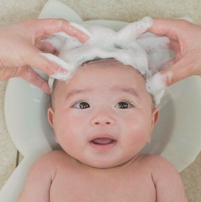 赤ちゃんの頭皮は皮脂量が多く、ベタつきがち。頭は唯一こすっていい部分。専用のシャンプーを使って、しっかり洗ってあげて。たっぷりの泡で、地肌をマッサージするように洗い、シャワーですすいであげて。
