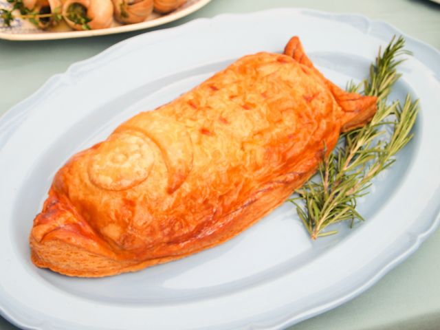 サーモンのパイ包み焼きは、肉厚のサーモンがぎっしり! パイ皮は香りよく、サーモン本来のおいしさもしっかりと感じられて、素材には徹底的にこだわっているというのも納得!言われなければ冷凍食品とは絶対分からないおいしさでした。