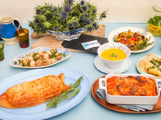 ピカールのラインナップはなんと200種類以上!フランスではおなじみの家庭料理からレストランのメニューにありそうな料理まで、さまざまな味がそろっています。サーモンのパイ包み焼きは、お魚のビジュアルがインパクト大! 前菜ながら主役級の一皿に。(700g、3〜4人用2,980円)