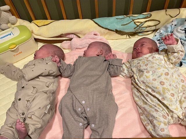女の子3人は生後4カ月で退院。退院1週間後の3人