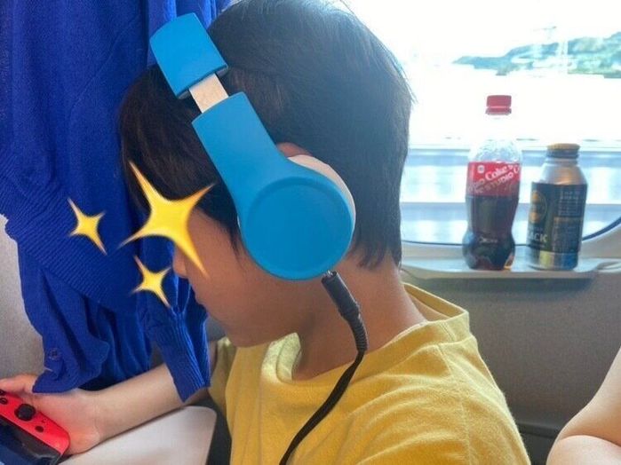 新幹線で大阪へ移動中。USJに早く行きたい気持ちを押さえつつ、息子はゲームに夢中。
