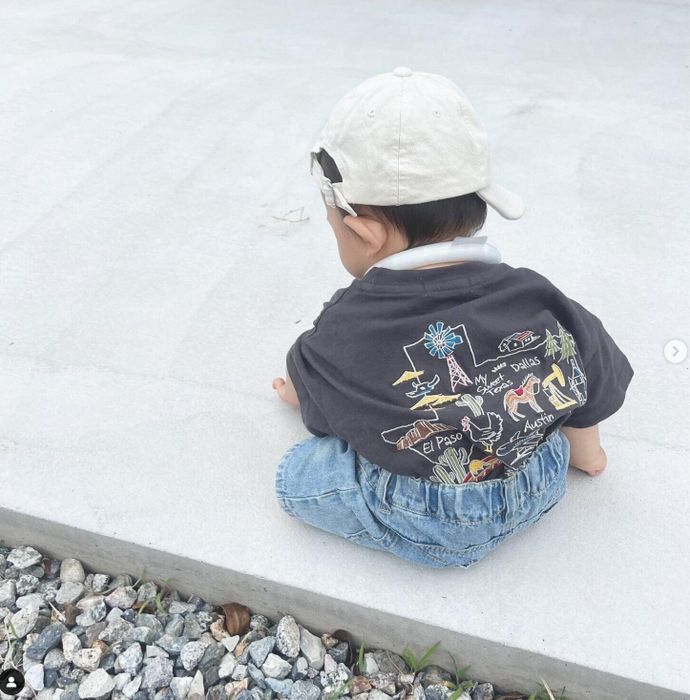 aymさんはしまむらブランド「Little Weekend(リトルウィークエンド)」のTシャツとデニムでおでかけコーデ!特にTシャツのバックプリントがお気に入りポイントだそうで、「可愛いからもう既にたくさん着ております」とのこと♪