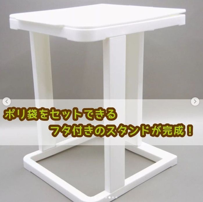 こちらはayblg51さんがセリアで購入した「袋スタンド 置き型」。6個のパーツが入っているようですが、パッケージの裏面に組み立て方法が記載されており道具不要で組み立てられるとのこと。ふた付きで見た目的にも衛生的にもうれしいと大満足の様子。キッチンの卓上ごみ入れに最適なんだとか◎