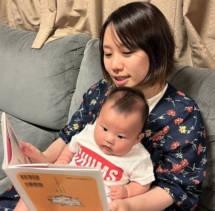 絵本の読み聞かせをすると、真剣な表情でじっ~と絵を見たり、時には笑ったりもします。