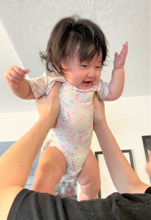 体がしっかりしてきたので高い高いにチャレンジ。最初はこわがっている様子でしたが、慣れてくるとキャッキャと大喜びのハイテンション!
