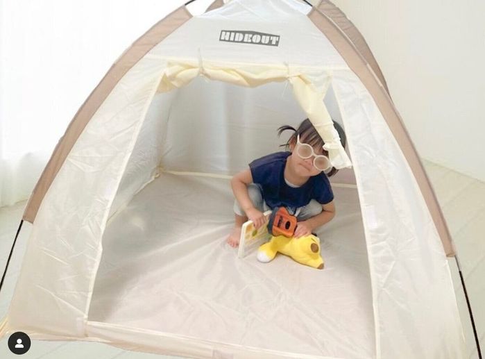 こちらは____.meistagramさんが3COINSで購入した子ども用のテント。2,200円から550円に値下げされていたようで、安くゲットできてうれしいと満足そうです。おうちで秘密基地のようにして楽しんでいるんだとか◎
