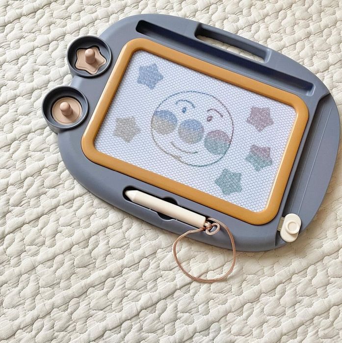 こちらはchipa_zouさんが即買いしてしまったという3COINSのお絵かきボード。ピンク系のものもあったようですが、グレーっぽいブルーが気に入りこちらのカラーをチョイスしたのだそう。1,100円商品とのことですが、カラフルに描けてスタンプも付属していてクオリティが高いですよね◎