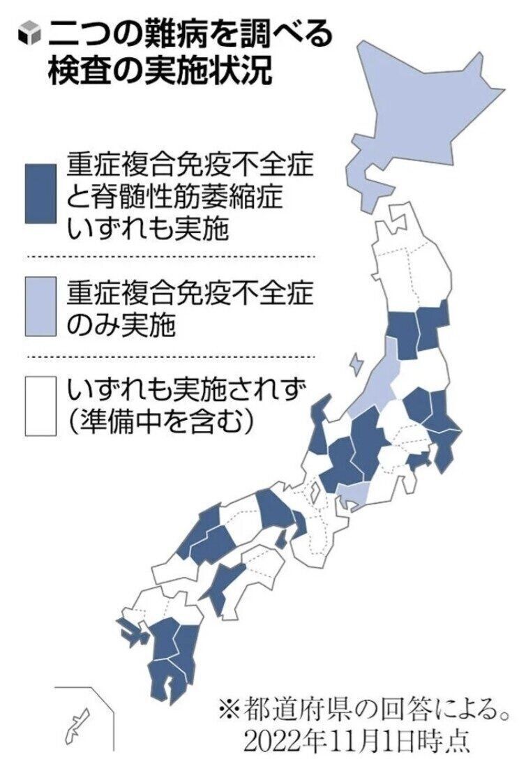 早期発見・早期治療ができる病気が増えてきています。しかし、その病気を見つける拡大新生児マススクリーニング検査の実施都道府県はまだ半数以下です。