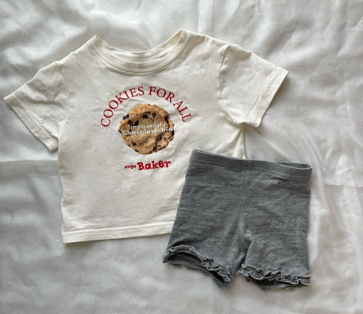 クッキーのイラストがかわいい、こちらの白Tシャツは、バースデイで販売されているもの。SNSでバズっており、「色違いで買った!」という声が多くありました!保育園や幼稚園着としてはもちろん、サロペットやカラーパンツ、柄パンツなどと合わせると、お出かけ着としても活躍しそう♪