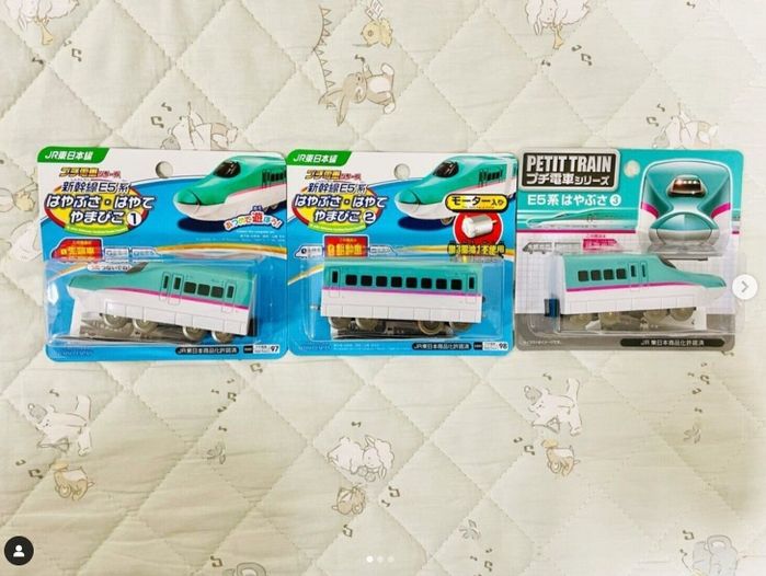 こままさんはダイソーで新幹線「はやぶさ」のおもちゃをGET!1つ110円で、こちらの方は3つ買ったそう。電池を入れれば自動で動くとのことで、新幹線好きのお子さんにはたまらない100均おもちゃですよね♪ こちらの「プチ電車シリーズ」は、はやぶさ以外の新幹線もあるようで子どもと一緒に選ぶのも楽しそうです。