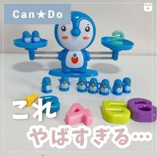 ran_ikujiさんはキャンドゥの550円商品「かずあわせペンギン」をセレクト!数字のブロックとペンギンが入っているそうで、数字の数とペンギンの数が釣り合う重さになっているんだとか。足し算や引き算を学ぶきっかけにもなるとのこと♪