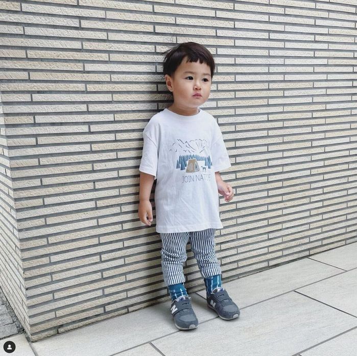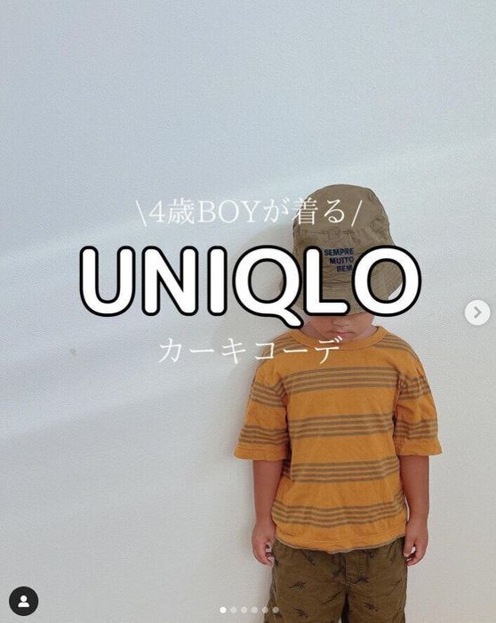 Rinaさんは「KIDS ボーダークルーネックTシャツ」を購入。こちらのパンツもユニクロのアイテムで、カーキコーデにしてみたんだそう。ボーダーカラーとパンツの色味を合わせたことで、コーデにまとまり感が出ていてとってもオシャレ!ベージュ・オレンジ・カーキの組み合わせはとっても相性が良いので、ぜひともおすすめです♪