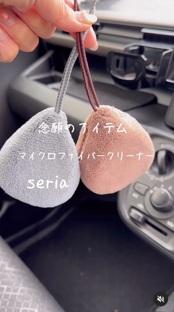 こちらはsayuさんがセリアで購入したマイクロファイバークリーナー。車内のホコリや手垢などをきれいにできるアイテムのようです。店舗に行くたびに売り切れで、ようやくゲットできたんだとか。三角形で細かいところも掃除しやすく、「まじで神」とお気に入りのようです◎