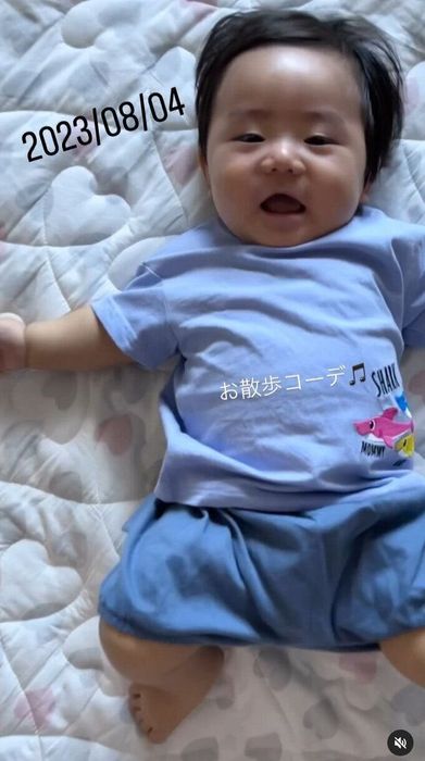 YUさんは、大人気のベイビーシャークコラボTシャツを購入。こちらはお散歩コーデなんだとか。ほどよいゆったり具合が良いですよね。まだまだ暑い今の時期から秋口まで、長く大活躍してくれそう!とってもお似合いですよね♪