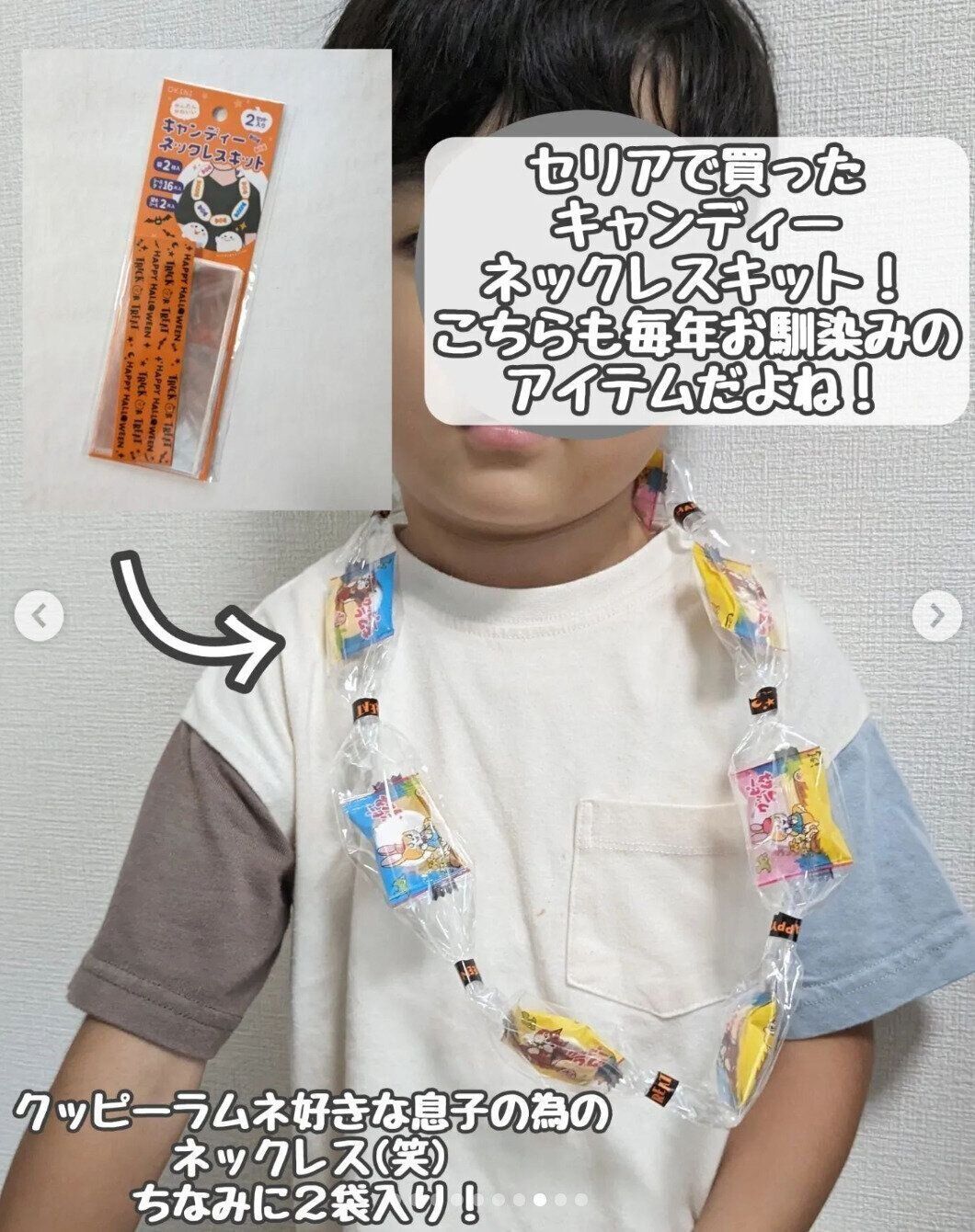 こちらはmaruteteteさんがセリアで購入したキャンディーネックレスキット。好きなお菓子を入れてネックレスが作れるのだそう。毎年人気なので早めにゲットしたほうがよさそうとなんだとか。子どもたちが喜びそうなアイテムですよね♪