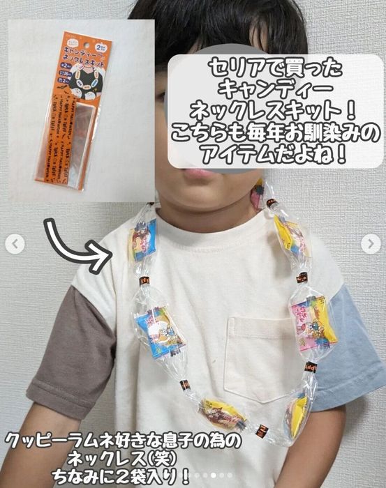 こちらはmaruteteteさんがセリアで購入したキャンディーネックレスキット。好きなお菓子を入れてネックレスが作れるのだそう。毎年人気なので早めにゲットしたほうがよさそうとなんだとか。子どもたちが喜びそうなアイテムですよね♪